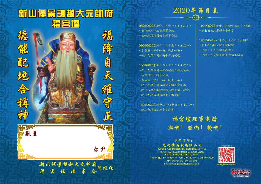 以下本坛庆祝福德正神大伯公宝诞活动时间表: